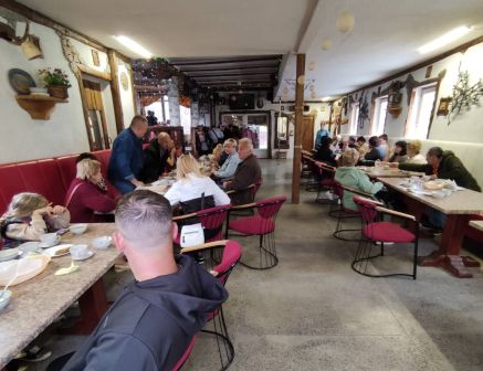 Дальше экскурсия продолжилась в усадьбе у знатока белорусской старины дядьки Андруся, который поведал историю корчмы на белорусской земле. Отведали и продегустировали диковинный пивной суп с творогом и гренками, а также старинное белорусское блюдо "верашчаку".