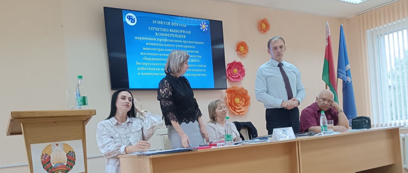В КУМОП ЖКХ «Барановичское городское ЖКХ» состоялась отчётно-выборная конференция первичной профсоюзной организации. В работе конференции принимали участие заведующий отделом организационной работы Брестской областной организации Белорусского профсоюза работников МПиКБП Сергей Яроцевич и председатель Барановичского городского объединения профсоюзов Елена Соловей.