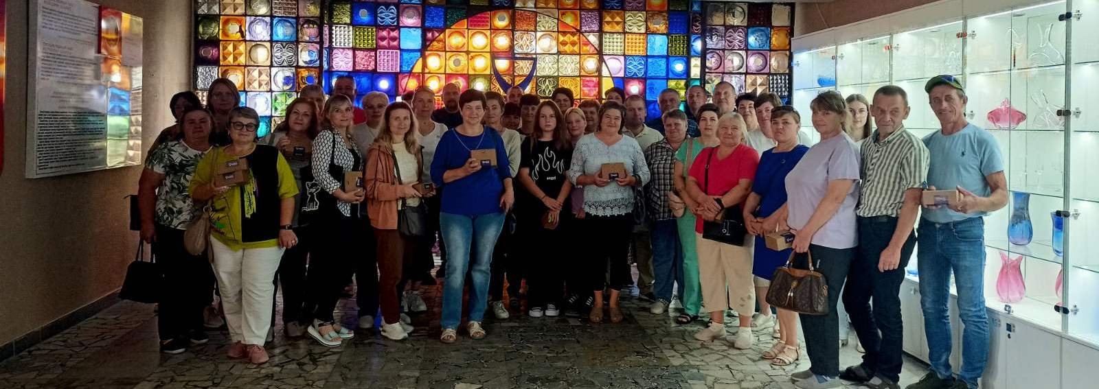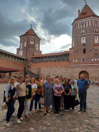 40 членов профсоюза ОАО "Домановский производственно-торго- вый комбинат" 3 августа 2024 года посетили стеклозавод "Нёман", город Новогрудок, где прошла обзорная экскурсия по городу, около руин Новогрудского замка, расположенного на горе Миндовга. Посетили д.Любча, аг. Щорсы и Мирский замок.