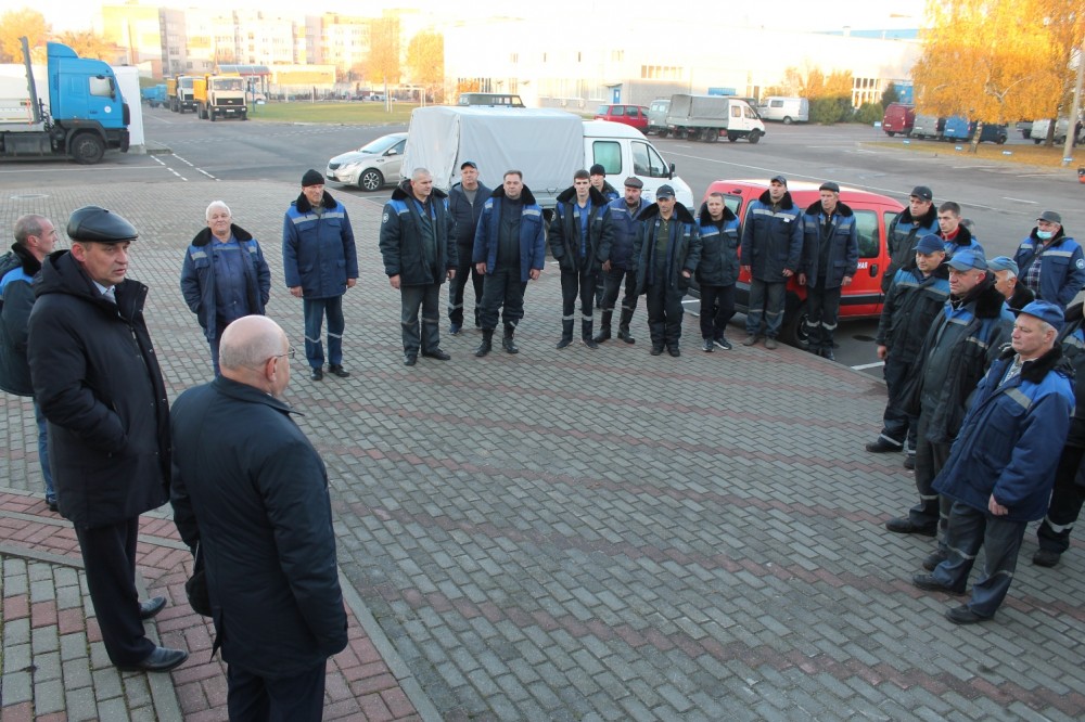 Стало доброй традицией в честь праздника на государственном предприятии «Брестводоканал» ежегодное проведение смотра автотранспортной техники и его готовности к зиме директором предприятия Пролиско Андреем Владимировичем.
