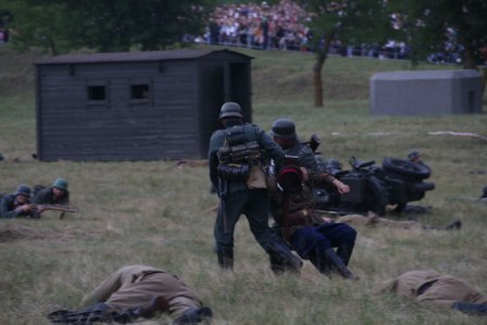Реконструкторы постарались отразить наиболее драматичные эпизоды обороны Брестской крепости. Использовали пиротехнику, танк, мотоциклы, бронемашину, грузовик. Причем с нашей стороны техники было немного. Таким способом нужно было показать, что у немцев в тот момент было значительное силовое превосходство.