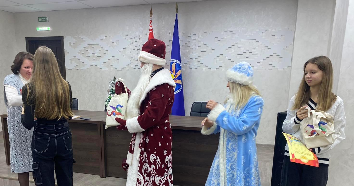 В преддверии Нового года не обошлось и без поздравления Деда Мороза и Снегурочки, которые порадовали ребят сладкими подарками.