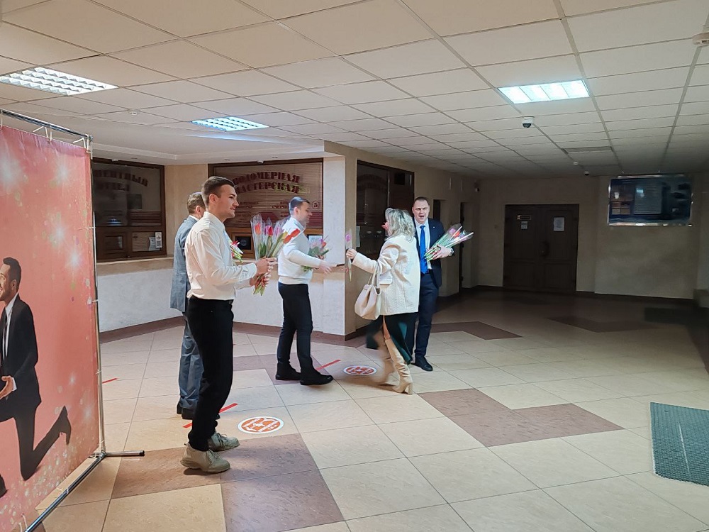 Так, накануне этого праздника 7 марта 2025 года с самого утра прекрасная половина коллектива государственного предприятия «Брестводоканал» принимала поздравления. Каждой приходящей на работу женщине вручались цветы, звучала музыка и поздравления от мужской половины коллектива предприятия. Была организована фотозона, где каждый желающий мог сделать фото на память.