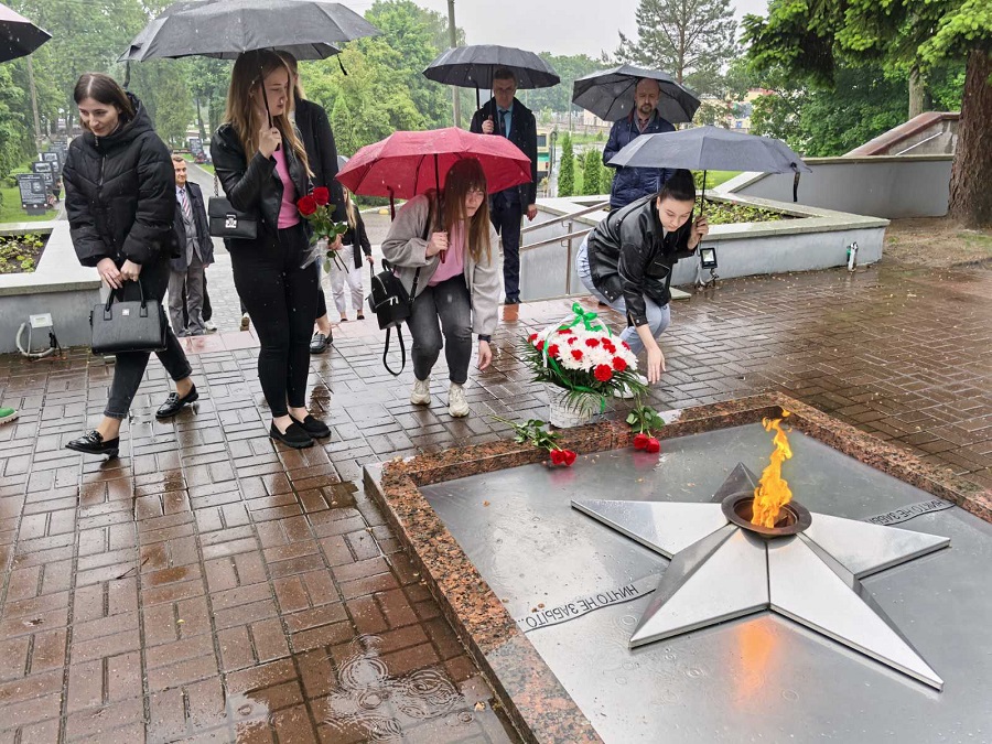 Участники форума возложили корзину с живыми цветами к вечному огню героям павшим в борьбе за свободу и независимость Рдины в Великую Отечественную войну.