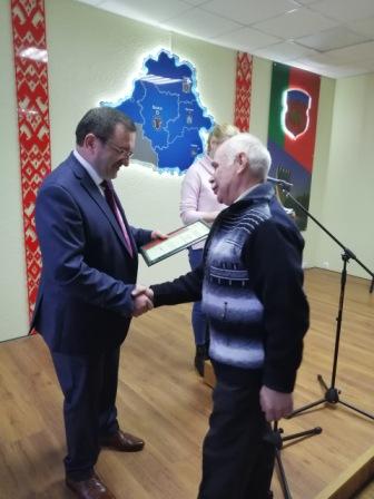 Не забыты были и ветераны. Директор отметил, что на предприятии работает двадцать три «Ветерана Брестского городского ЖКХ». Электромонтер Кирисюк Виктор Петрович проработал на предприятии 40 лет и удостоен звания «Ганаровы работнiк жыллёва-камунальнай гаспадаркi», водитель автомобиля Бондарук Иван Николаевич и машинист автогрейдера Дубина Михаил Адамович проработали свыше 35 лет, четыре работника имеют стаж работы на предприятии свыше 25 лет, а 12 работников проработали свыше 20 лет. Кроме того, директор вручил значки «Ветеран Брестского городского ЖКХ» шести работникам предприятия.