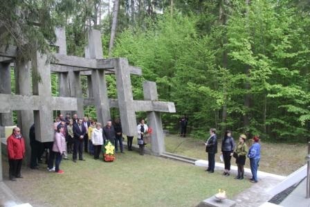 По маршруту движения, участники автопробега возложили венок возле памятника погибшим воинам Советской Армии. Далее колонна автомобилей проследовала к памятнику «Падающие кресты» в Никорском лесничестве Пружанского района, где состоялся митинг памяти с возложением венков на месте расстрела мирных жителей немецкими оккупантами.