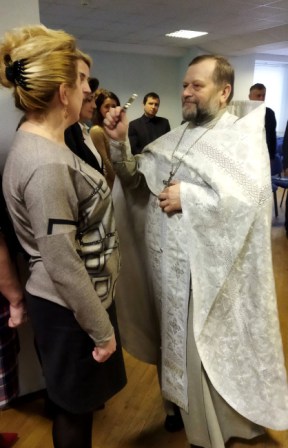 Чин водоосвящения совершил настоятель храма Святых Жен-Мироносиц протоиерей Константин. Также, он сердечно приветствовал и поздравил всех работников предприятия с праздником и пожелал мира, добра и благодати от Господа.
