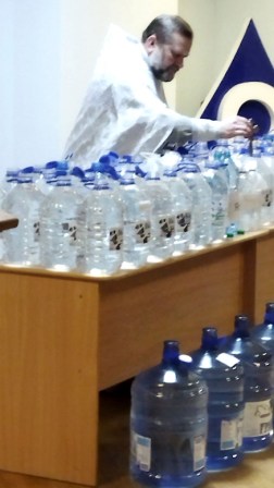Затем, все присутствующие получили освящённую крещенскую воду.